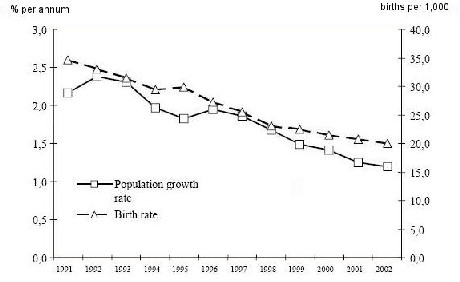 city. This is down noticeably from the figure of 6.3 in 2000, reflecting the declining birth rate.