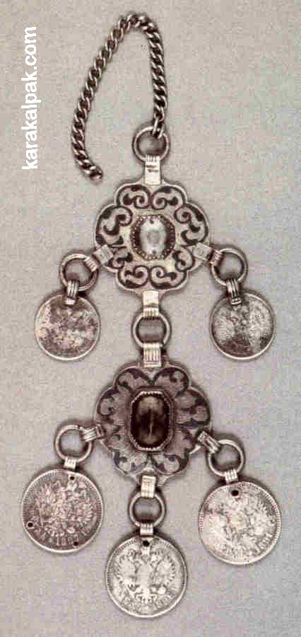 southern regions of Karakalpakstan bought necklaces in the Khivan style made of silver and gilded chains with turquoise and various pendants.