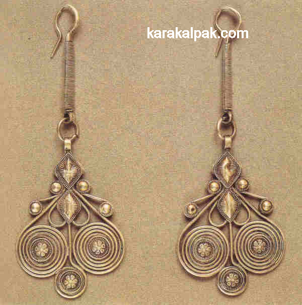 The Karakalpak halqaplı sırg'a is remarkably similar to an item of Khorezmian Uzbek jewellery known as a shokila.