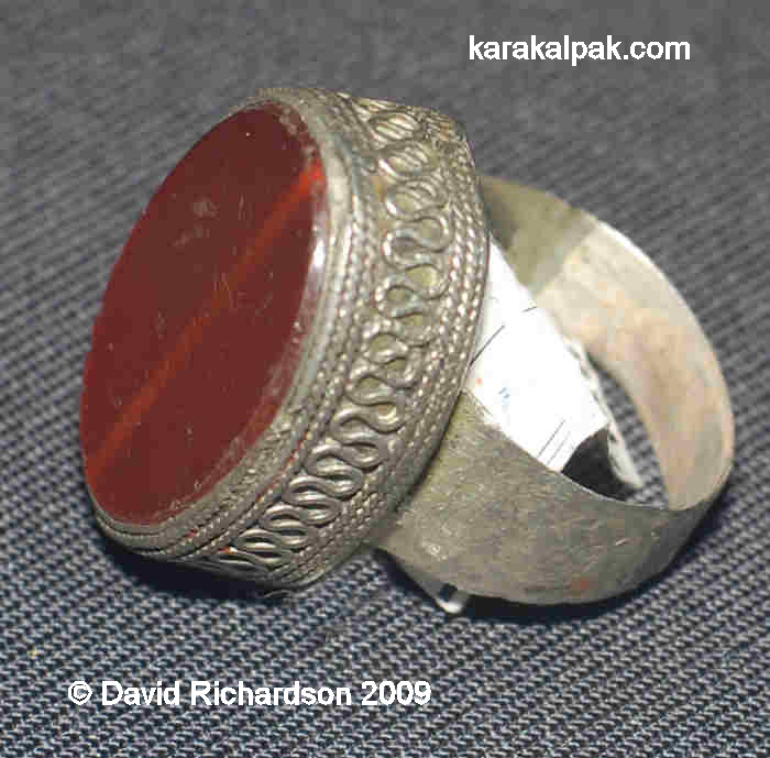The Karakalpak term for a nose-ring is a'rebek. A'rebek were one of the few items of Karakalpak jewellery that were usually