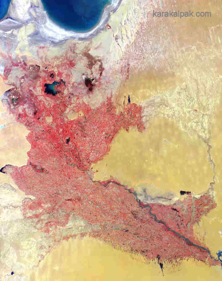 Geographically Karakalpakstan is situated within the band of northern deserts that stretch from the Moroccan Sahara to the Chinese Gobi. Although not