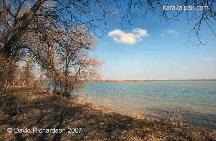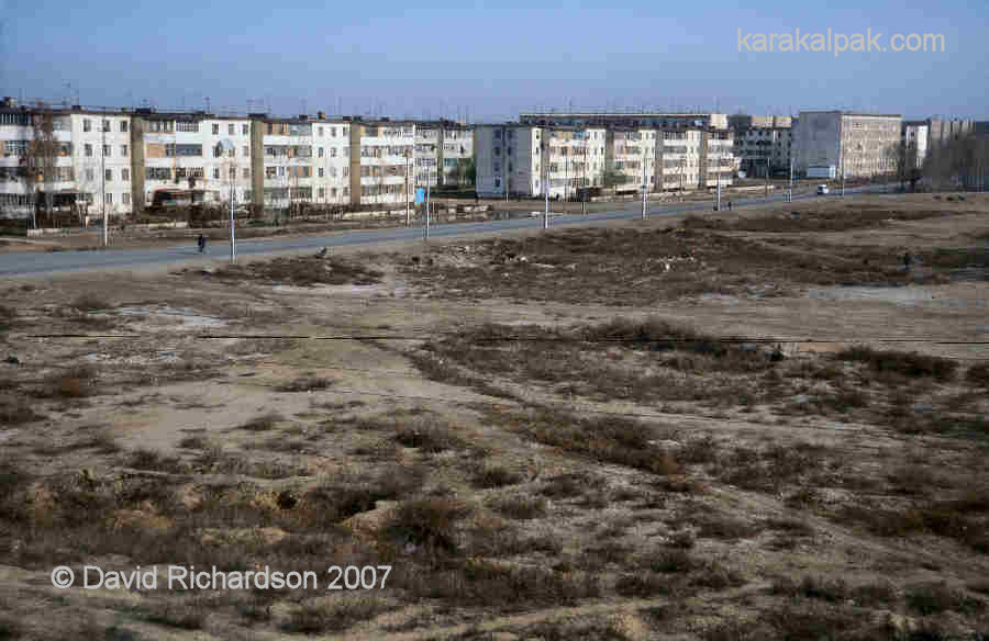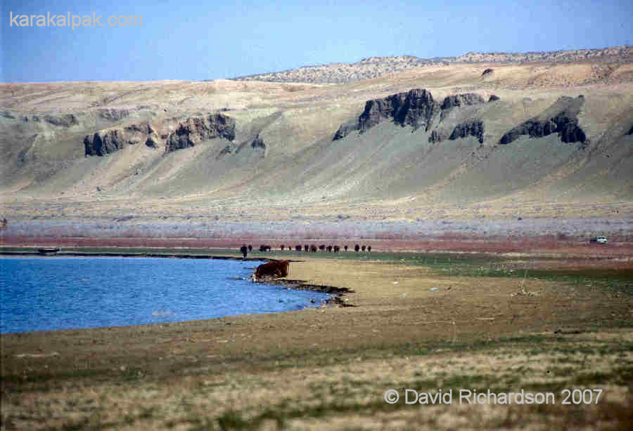 To the north-east, north, and north-west of Karakalpakstan, beyond the shores of the Aral Sea, lies a vast expanse of open steppe land or prairie that