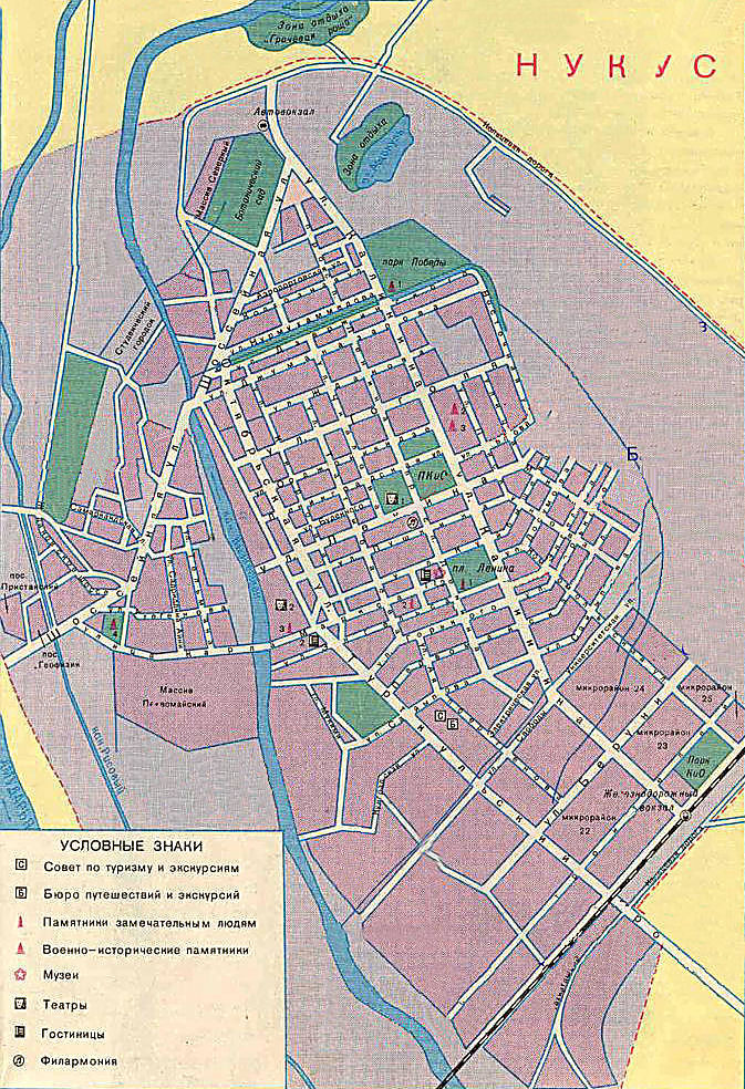 Surprisingly it is currently impossible to purchase a street map of No'kis. There was an old Soviet-era street map, which illustrated the layout