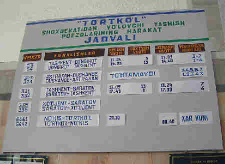Remember that timetables change so ask your hotel to check the day before. For details of train travel in Uzbekistan and Karakalpakstan see our How
