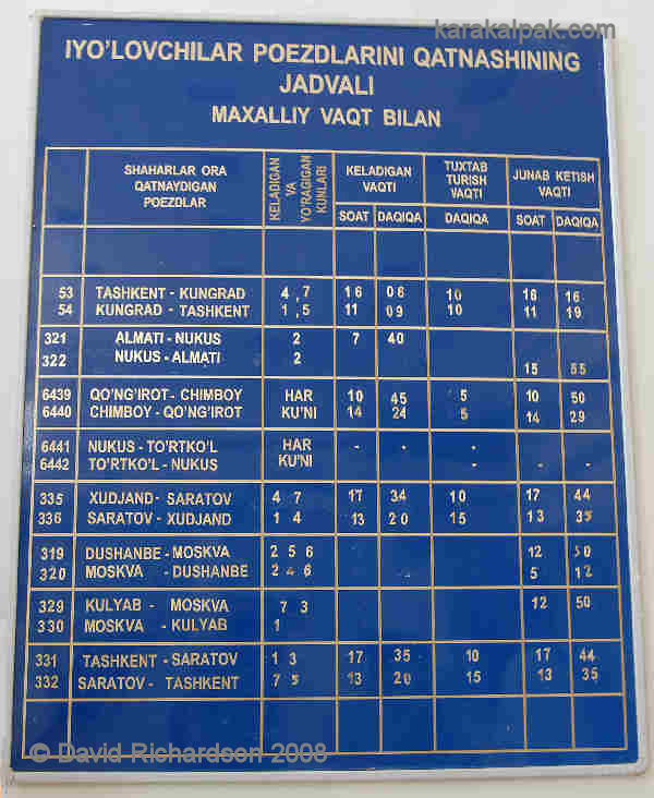 Railway enthusiasts interested in travelling by rail in Uzbekistan/Karakalpakstan are encouraged to visit Helmut Uttenthaler's detailed website