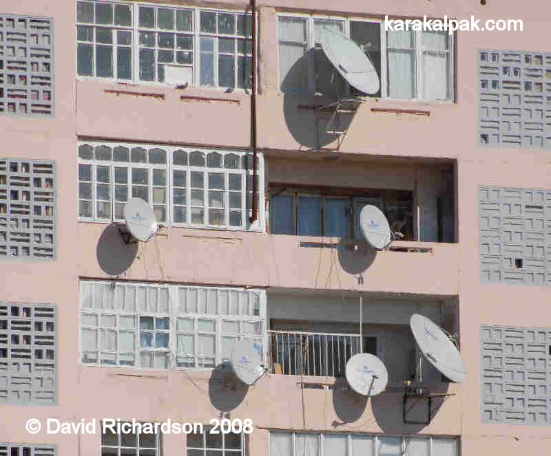 Karakalpak TV broadcasts for just 5 hours per day, 2½ hours of which are cartoons and films. The production quality is very low. The same news
